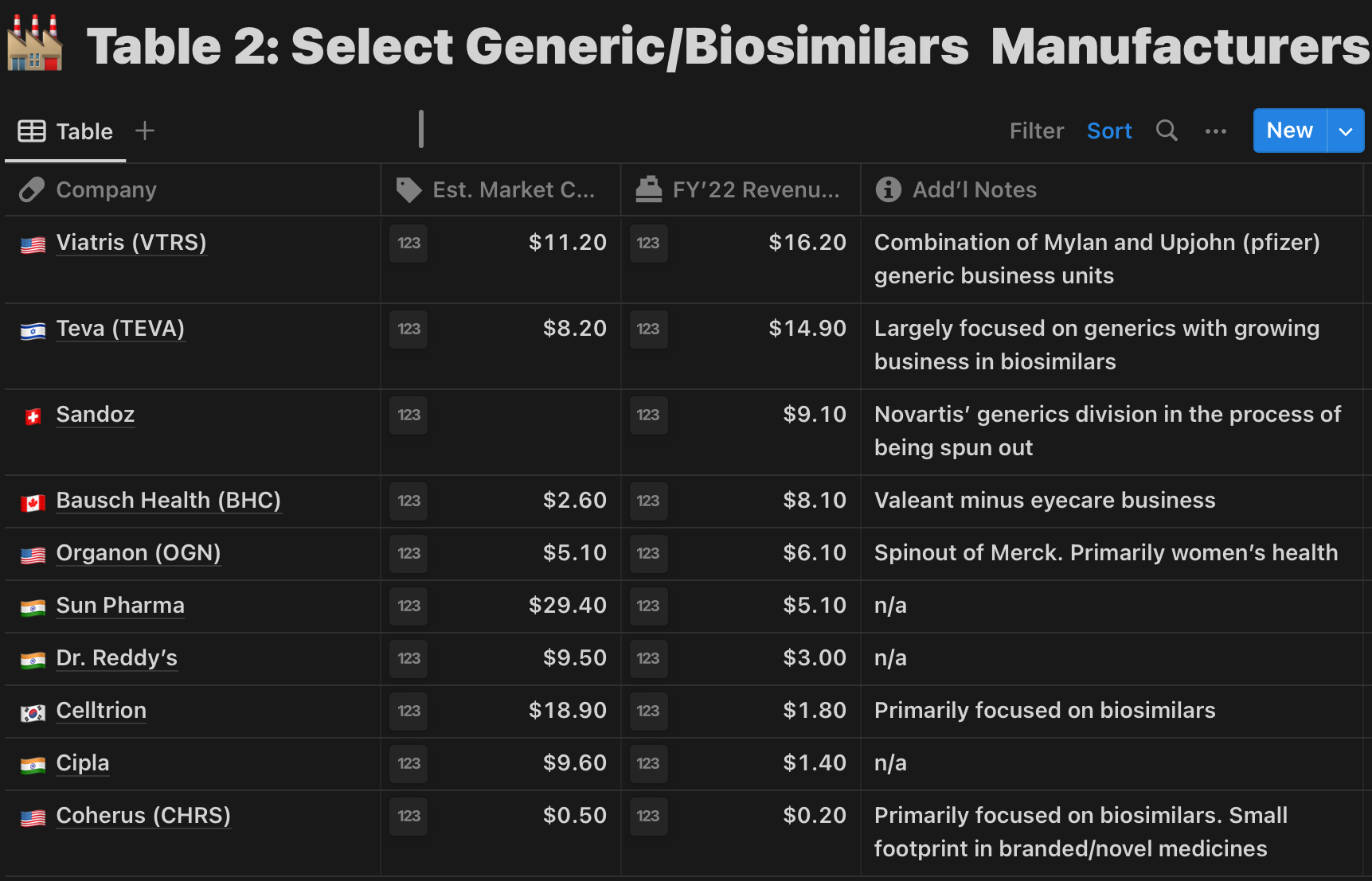 For a company the size of Amazon, acquiring a generic drug manufacturer would require a relatively low capital outlay. Per its Q3’23 earnings report, Amazon has ~$64B in liquidity, which dwarfs the market caps of pretty much any major generics company (see Table 2), enabling it to enter into the generics space with an all-cash offer.