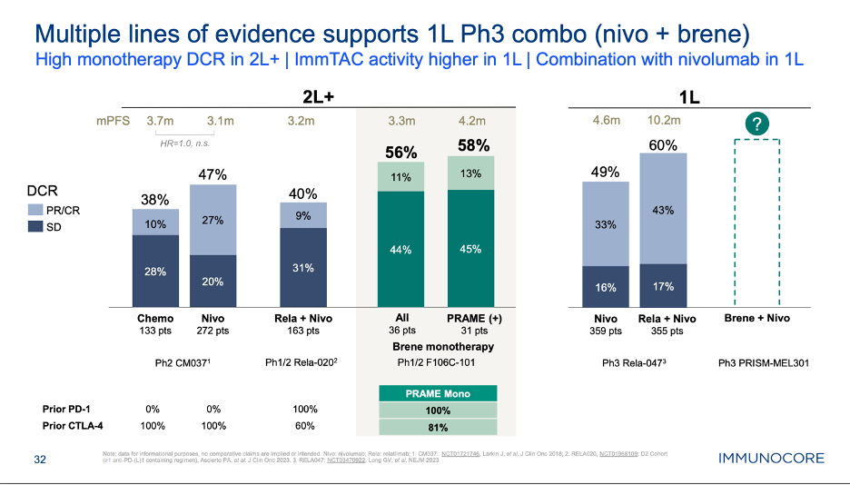 Melanoma is heating up in general. We also saw Immunocore provide a first look into monotherapy data of its second product, called brenetafusp (PRAMExCD3 TCR Bispecific), in 2L+ melanoma, as well as Replimune present the primary analysis of its P2 IGNYTE study of RP1 (oncolytic virus) + nivolumab in 2L+ melanoma.