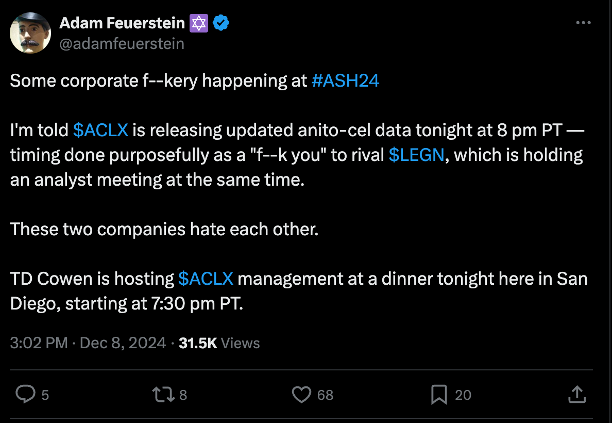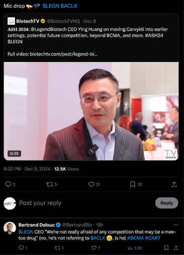 If it’s not evident from the slide images I posted above, Arcellx doesn’t seem to think too highly of Legend/CARVYKTI. Arcellx also decided to release updated anito-cel data late in the evening while Legend was holding an analyst meeting at the same time
