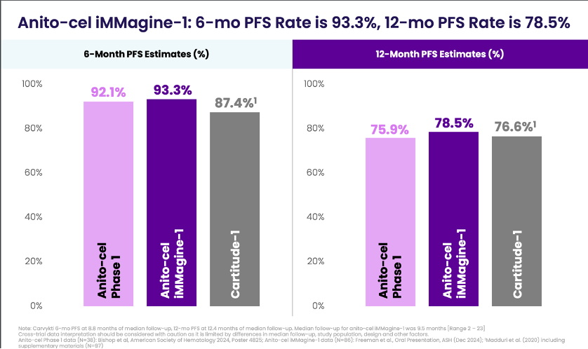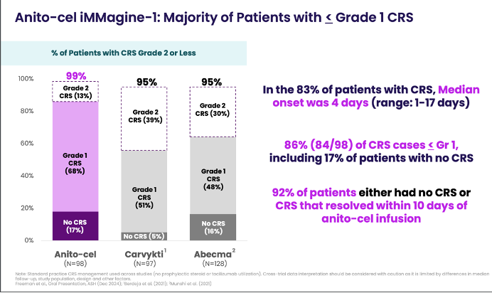 Enter anito-cel, which at ASH provided a first look at what its on-label product profile could look like and is trying to make a case that they have a best-in-class profile, relative to CARVYKTI.
