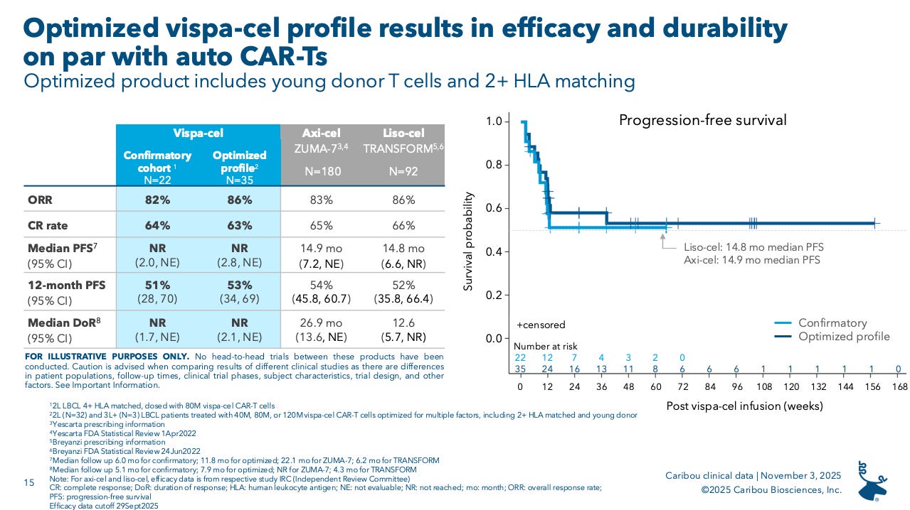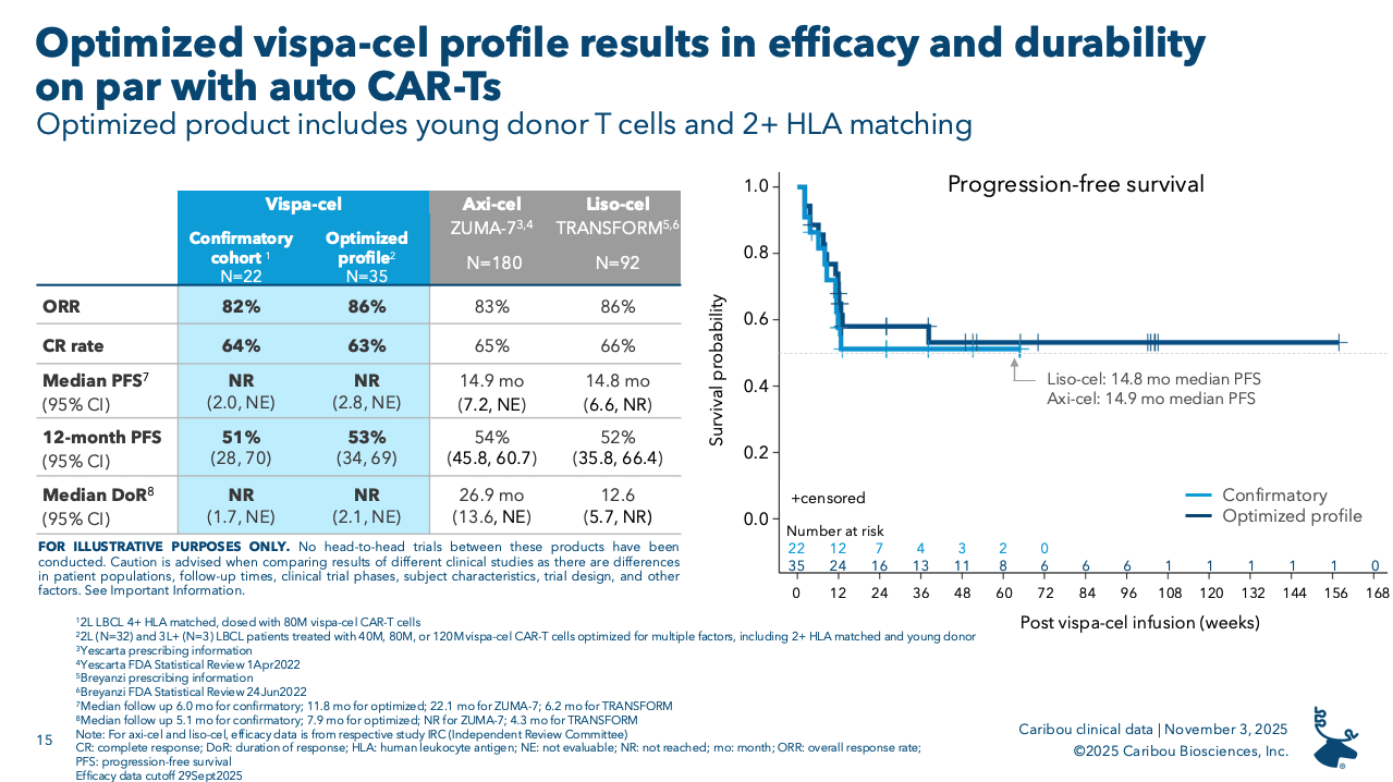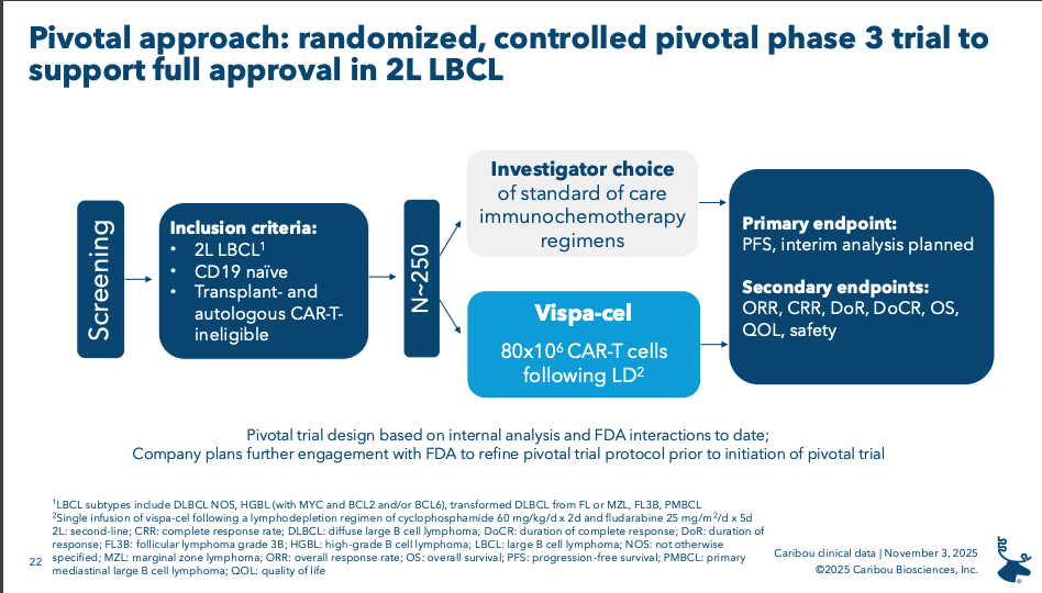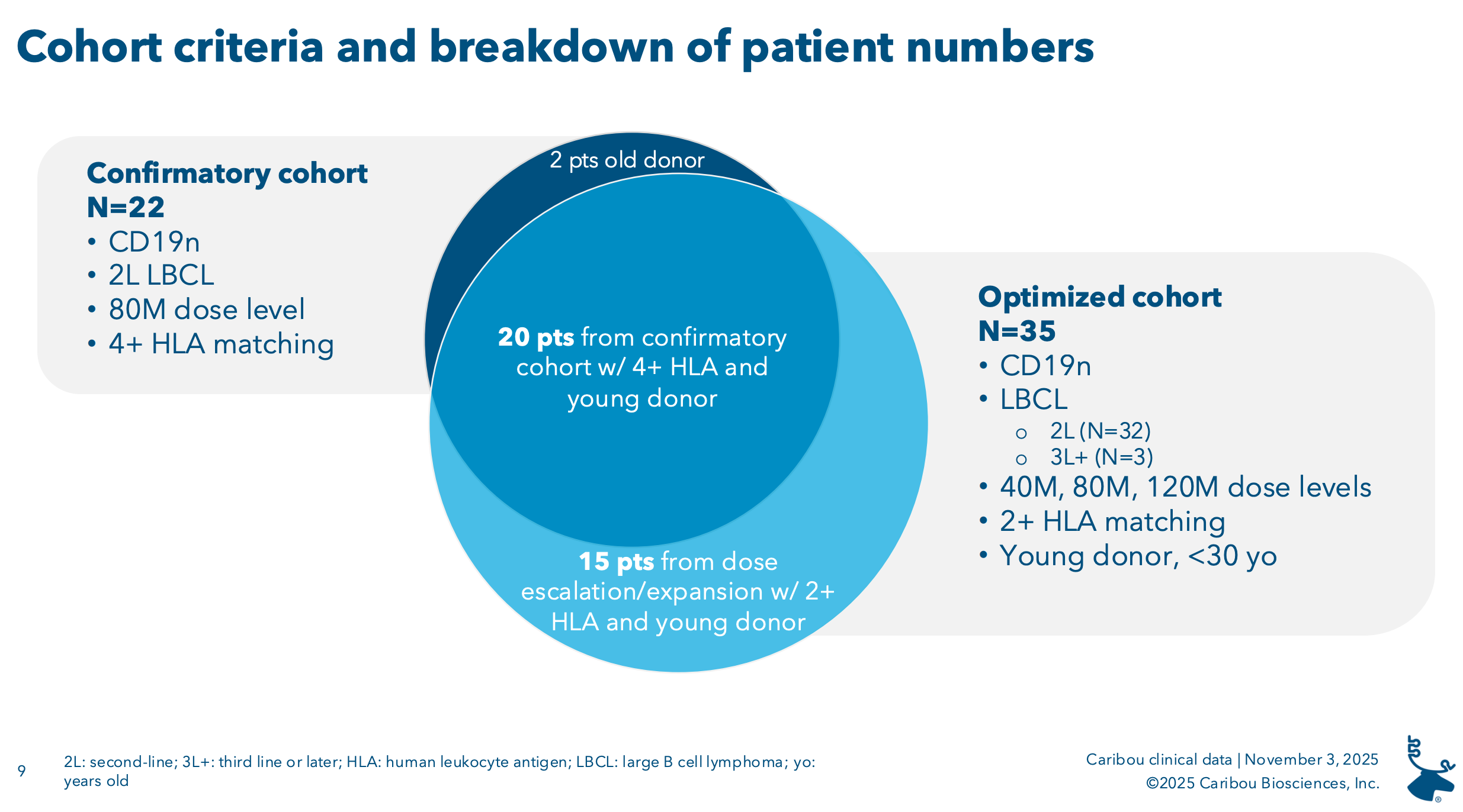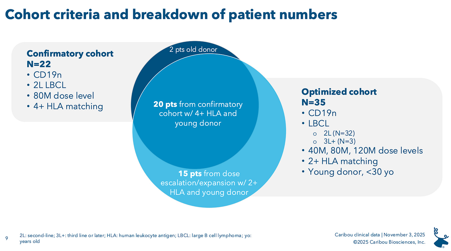 Next up for Caribou is determining whether this 2+ HLA matching strategy can work in a prospective fashion, followed by a P3 study in ASCT and CAR-T ineligible 2L patients.