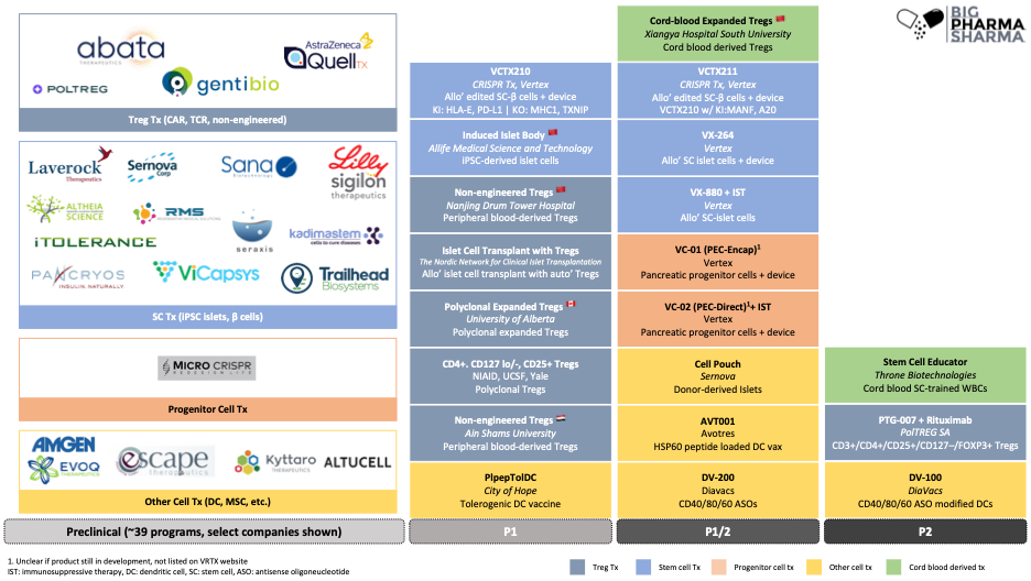 Landscape can be broadly classified into regenerative and therapeutic approaches. Regenerative approaches focus on replacing or adding functional insulin producing cells via a transplant procedure, while therapeutic approaches commonly look to establish immune tolerance or suppression/deletion of auto-reactive cells contributing to disease.