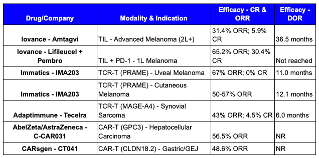 The early innings of solid tumor cell therapy have proven fruitful, representing a meaningful advance for patients who have no other treatment and options. While the logistics and manufacturing advantages of other approaches is well documented, the ability to generate high response rates and in some applications meaningful CR rates, should not be ignored. Most solid tumor doctors, save a couple tumor types, aren’t even accustomed to seeing complete responses in their patients at all with the most advanced non-cell therapy modalities like ADCs and bispecifics.