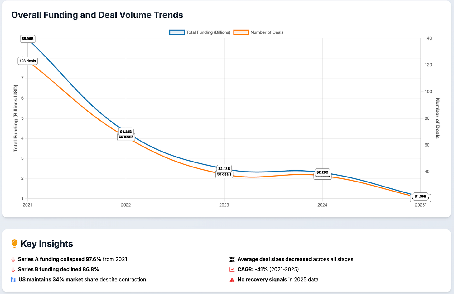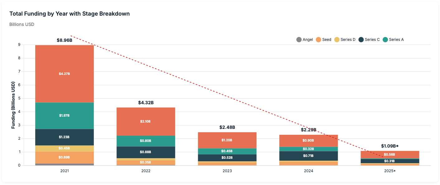 If you enjoy analyses, insights, and opinions about the BioPharma sector from an insider’s perspective, you can get access to all Big Pharma Sharma content by clicking the button below and becoming a paid subscriberCell therapy has been particularly hit hard, now being characterized as being an “out of favor” modality by investors. Many companies are filing for bankruptcy, laying off staff, merging, or simply abandoning the field completely. Commensurately, new company creation has collapsed. What was once a booming bastion of VC dollars has now seen few and far between. Total funding into cell therapy companies was roughly $9B in 2021 and has steadily declined, with annualized numbers at roughly $1B for 2025. We have seen a collapse in the number of funding rounds as well, most notably in the earlier Series A and B stages that are a fraction of what they once were.